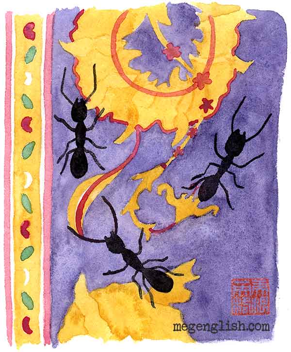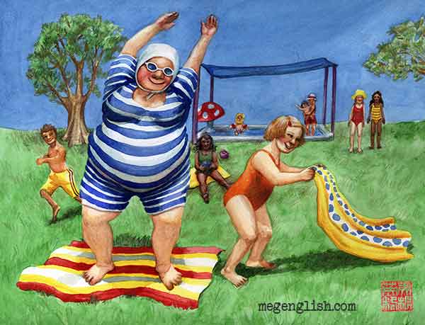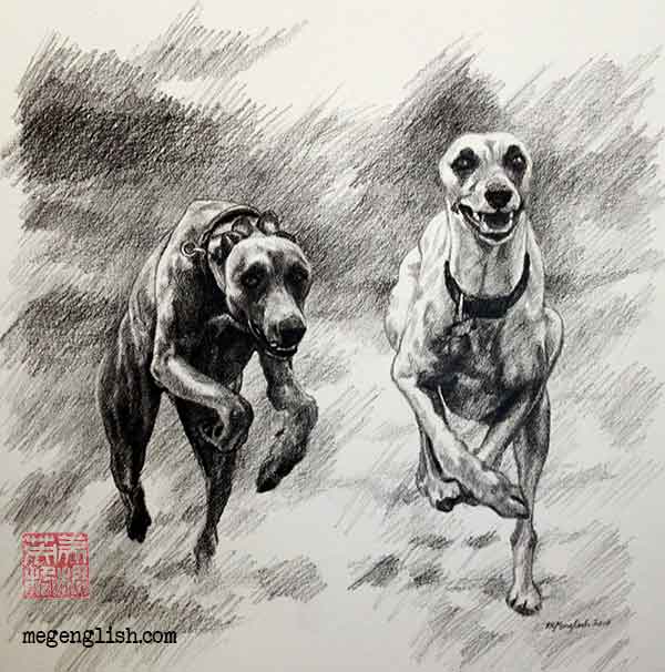 Copyright to all work incomplete or produced, including drafts and roughs, is retained by Meg English unless by prior written agreement.